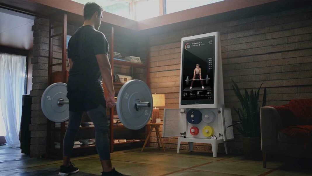 Förutom HD-skärmen finns det ett urval av utrustning och tillbehör – som vikter, skivstänger, bänkar, rack, kettlebells och mattor som användarna kan välja mellan för att skapa en egen hemmaträningsstudio.