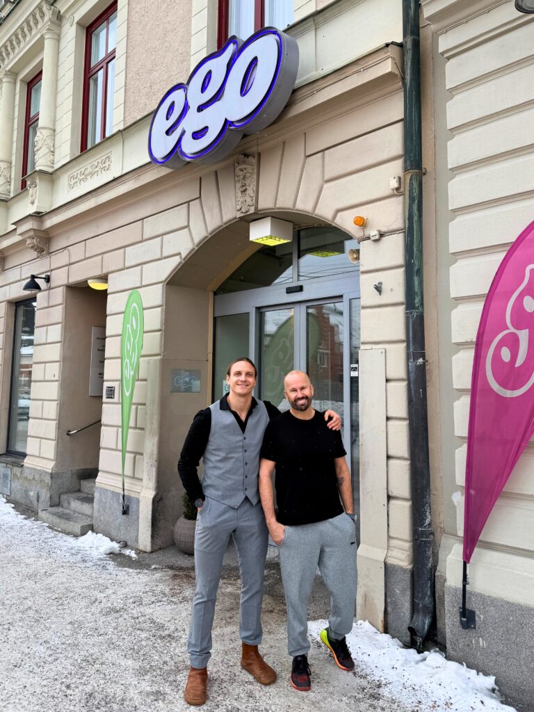 Vi möts upp på EGO Storgatan för att träna ett pass tillsammans, innan vi tar oss vidare till EGO City på Södra Järnvägsgatan. Där dukar vi upp en portabel poddstudio på plats i anläggningen – och spelar in ett avsnitt som blir både ett personporträtt och en branschspaning från Västernorrland.