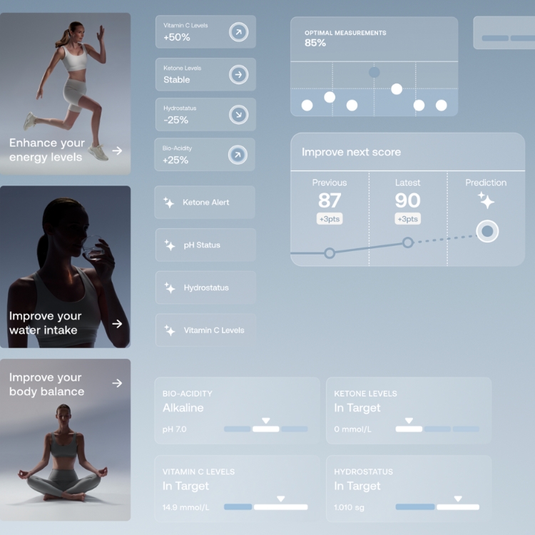 - U-Scan Nutrio – mäter pH-värde, vätskebalans, ketoner och C-vitamin för att ge användaren en tydlig bild av kroppens metaboliska status och hur kost, stress och träning påverkar hälsan.
